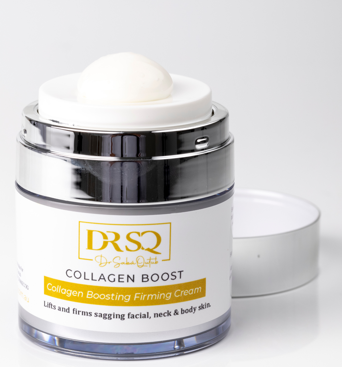 The Collagen Boost moisturiser has a synergistic blend of Vegan DMAE, MSM & organic phytolipids, which restructures the thinning dermal/epidermal layers to dramatically firm, tighten and plump the skin.